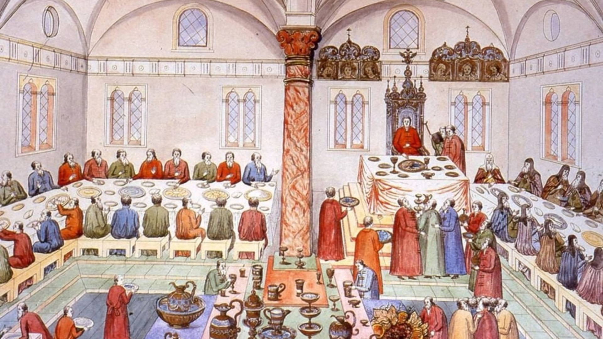 Мы разберём разные исторические источники, включая письменные документы, иллюстрации, отражающие кулинарные традиции и обычаи, связанные с едой и, конечно же, Домострой.